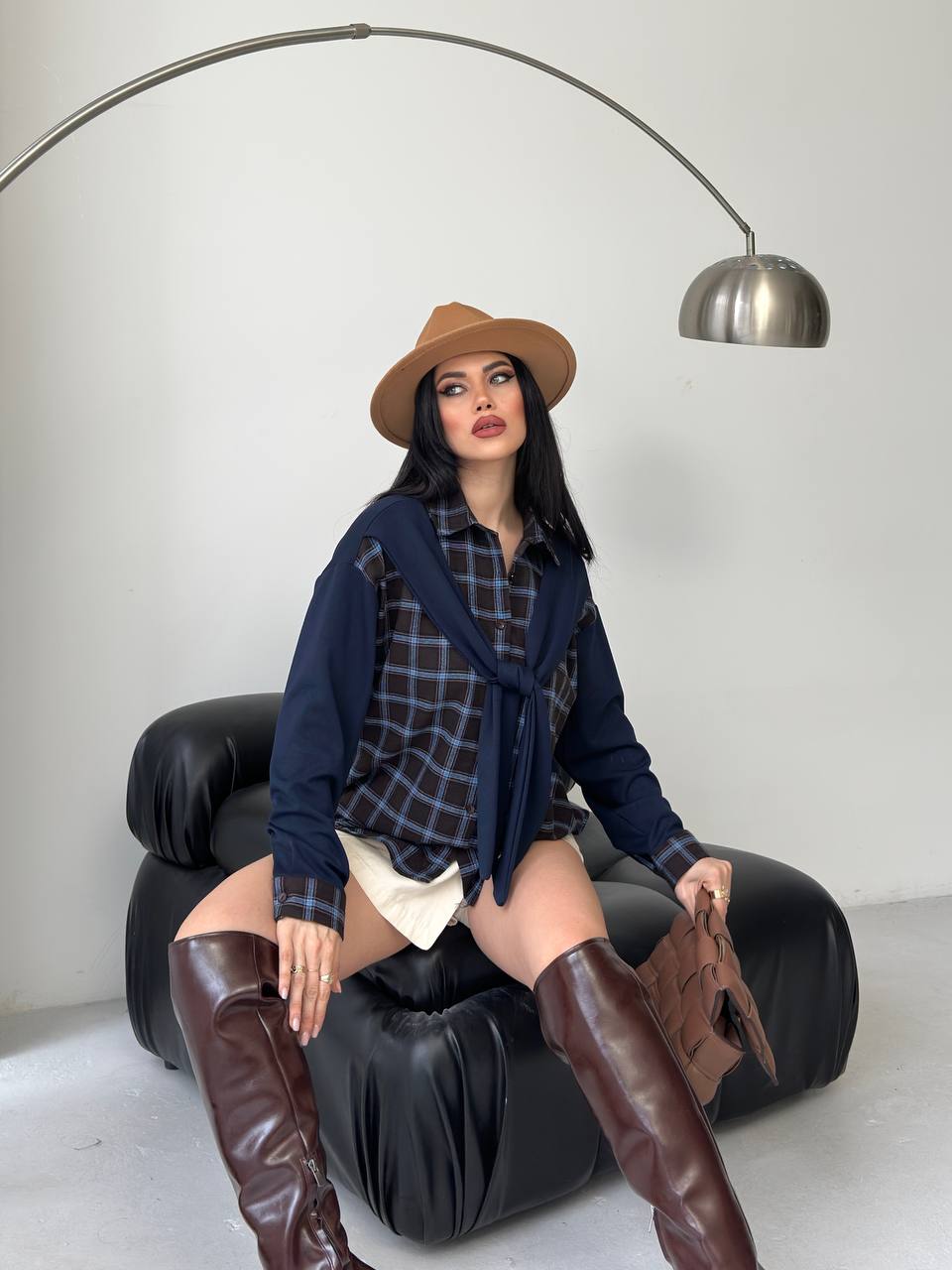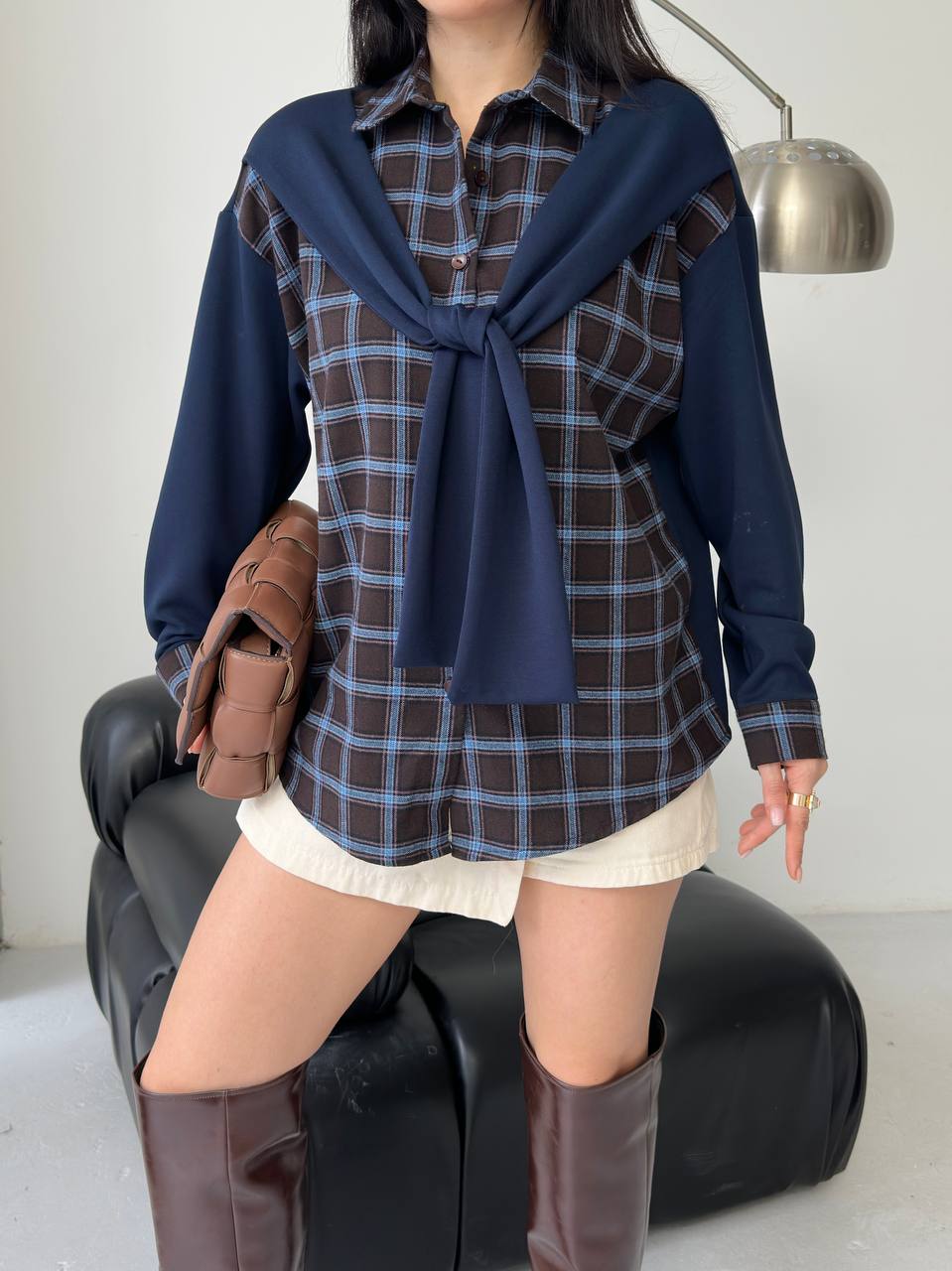 חולצה מכופתרת עם צעיף מחובר