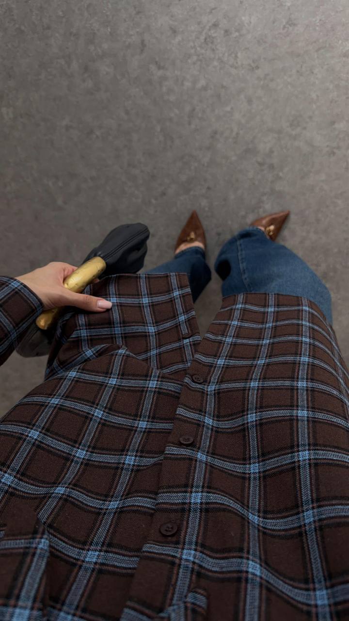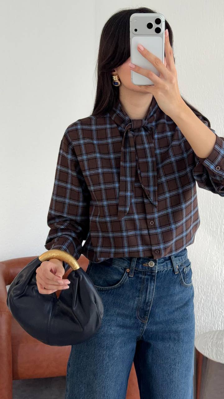 חולצה משובצת מחוברת לצעיף