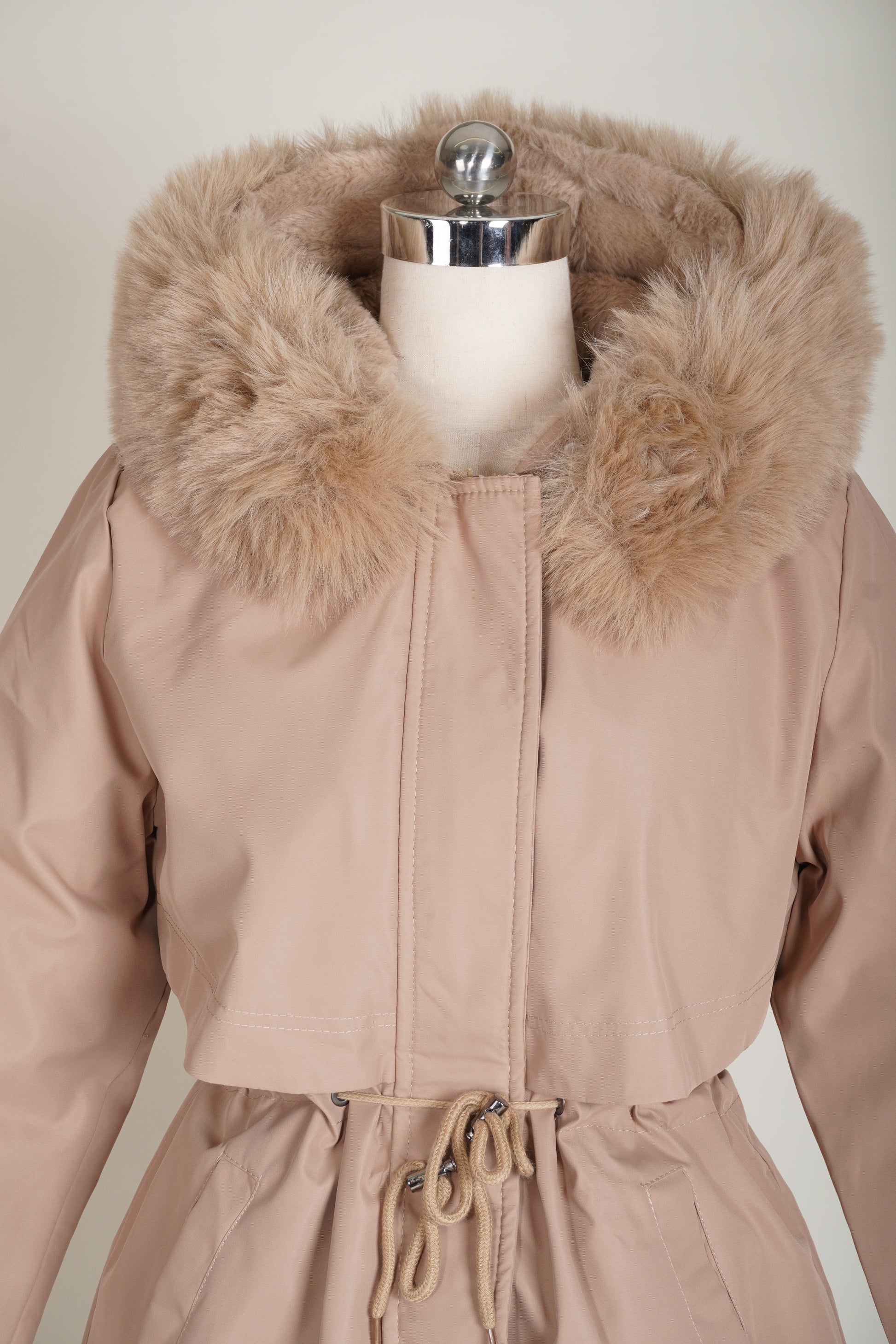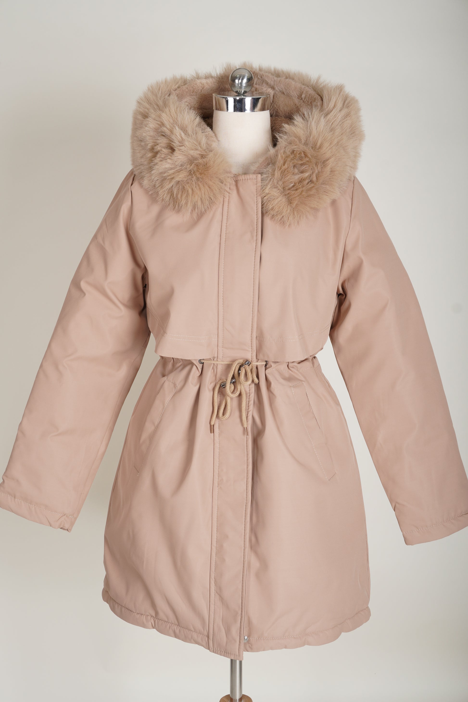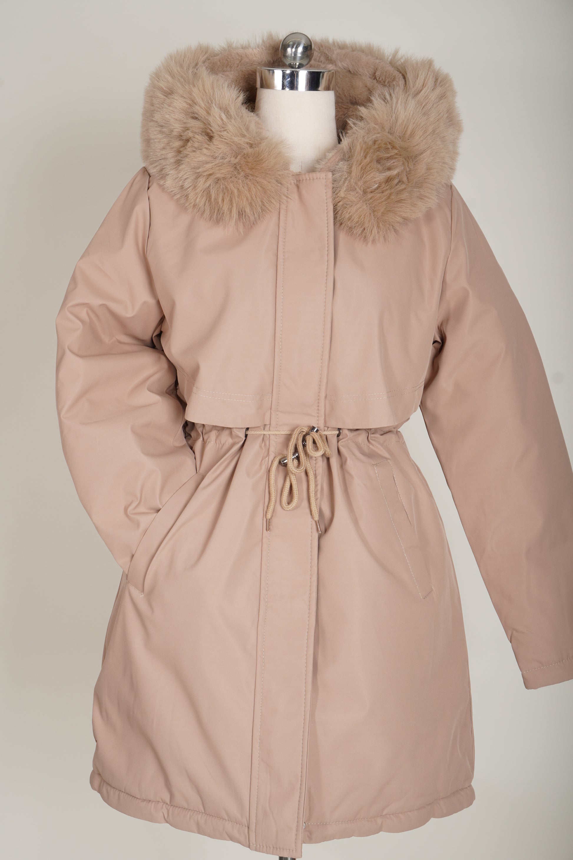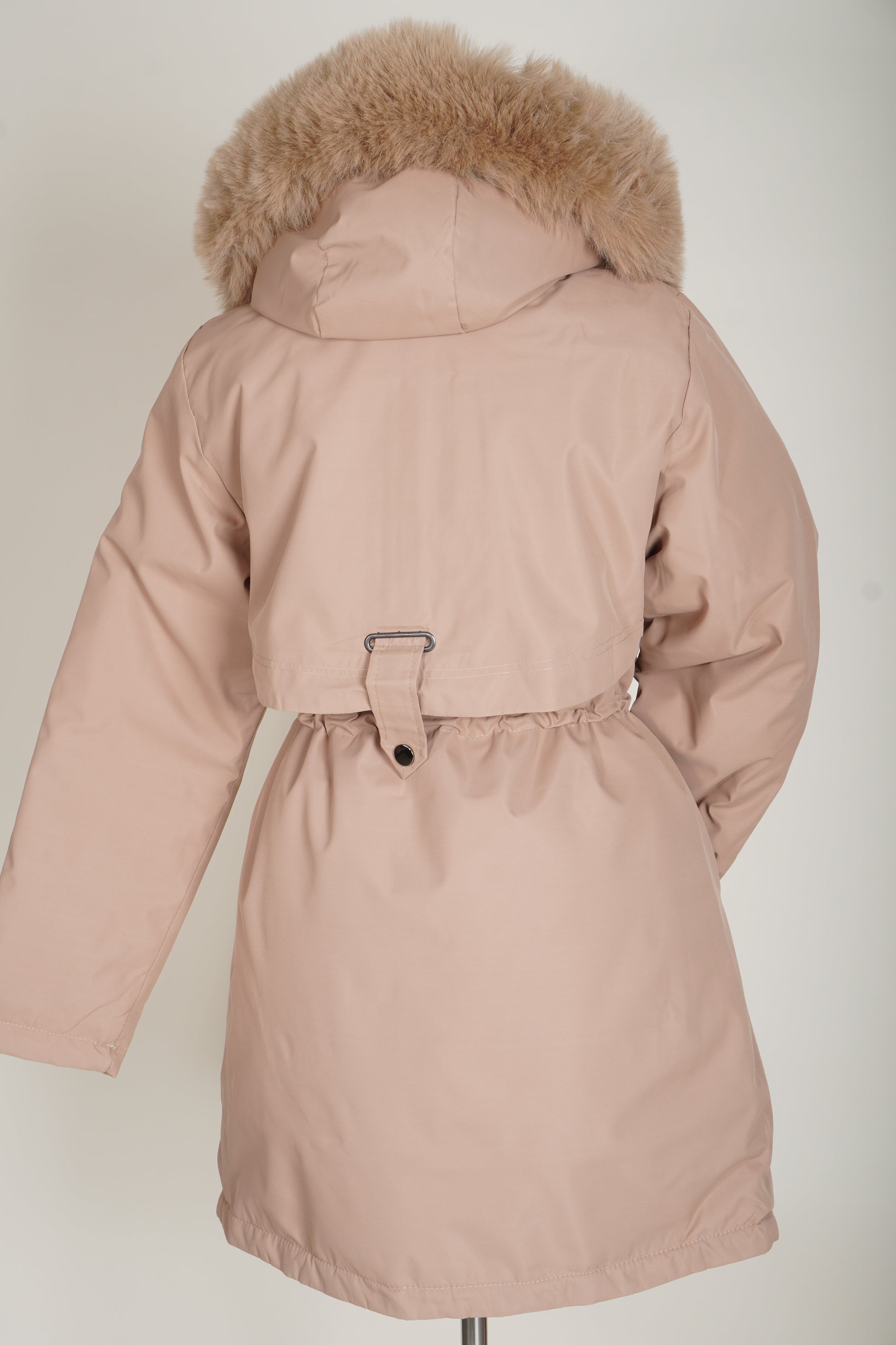 מעיל דגם פארקה עם פרווה - צבע ורוד
